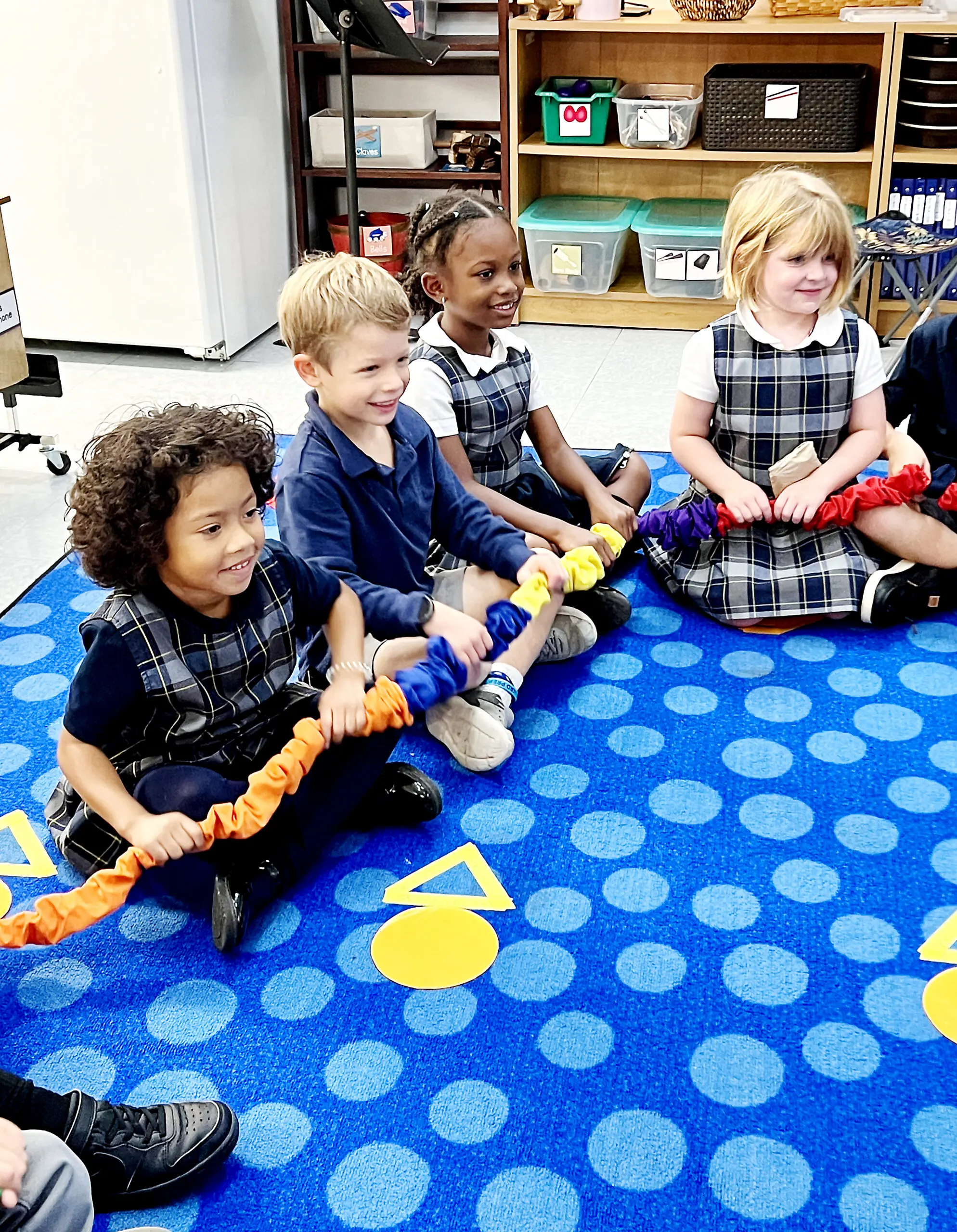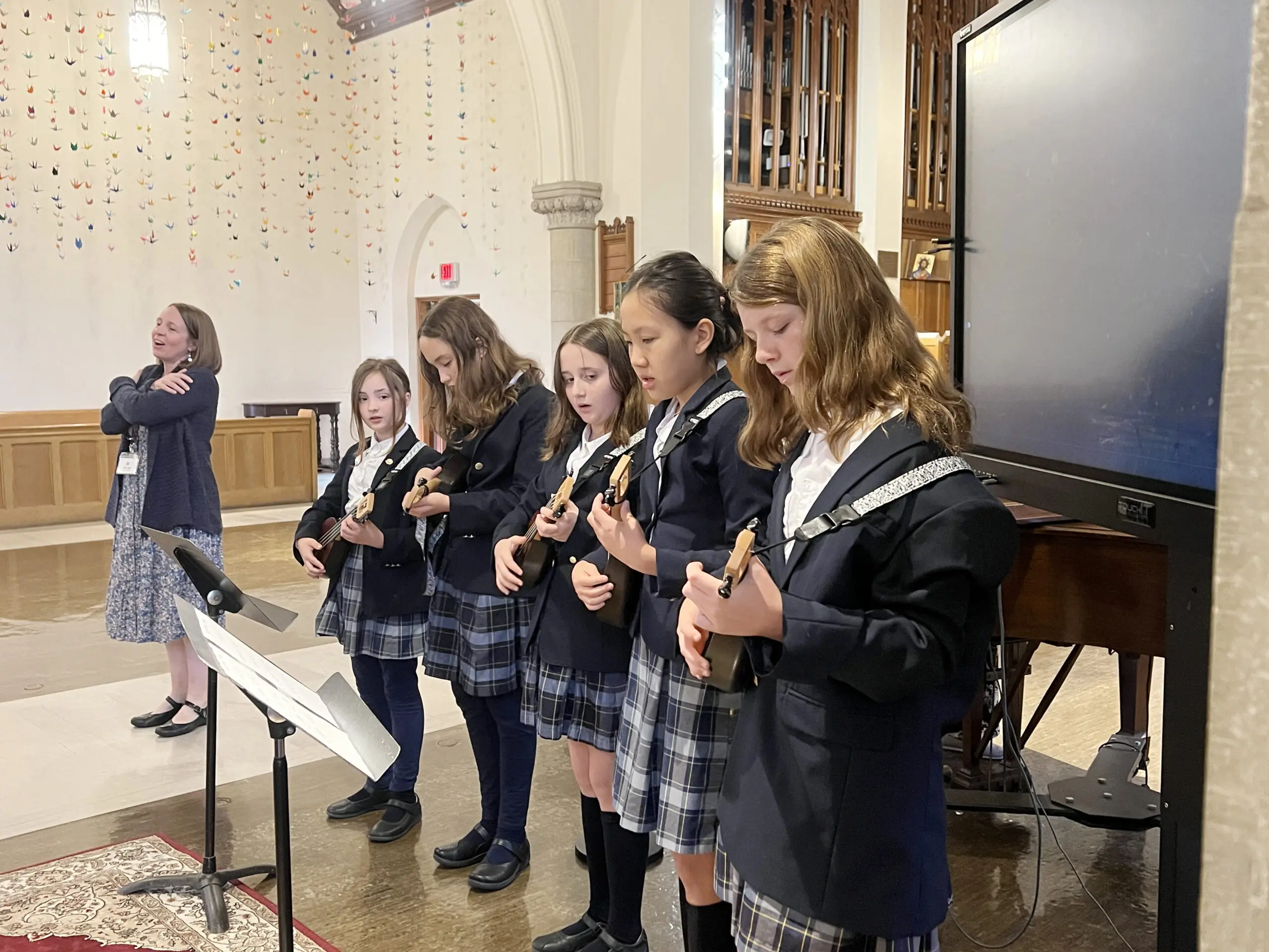Our goal is to inspire and encourage a love of music, to gain a solid understanding of musical concepts and to become musically literate. We seek to develop musical ability and understanding by using the three artistic processes of creating, performing and responding. The curriculum draws from a variety of methods and includes the use of Orff instruments and Kodaly solfege syllables. Special attention is paid to ear-training, vocal development, and instrumental skills, with the goal of encouraging students to become poised and joyful musicians. Students perform throughout the year at special events, chapel celebrations, and grade-specific productions.